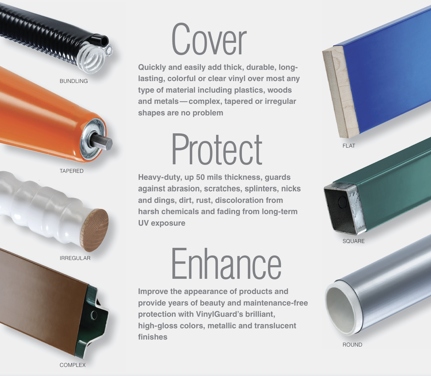 VinylGuard roller coverings are abrasion, chemical, and cut-resistant and shrink to fit both straight and tapered industrial conveyor rollers on material handling equipment.
